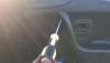 Fate caso a quella clip, roba, non so come chiamarla, che vedete nella foto qui sotto, perchè se il laccio non passa tra la clip e l'esterno dello sportello, il risultato sarà che il vetro scenderà un po' più di prima ma comunque si bloccherà prima di arrivare in fondo.