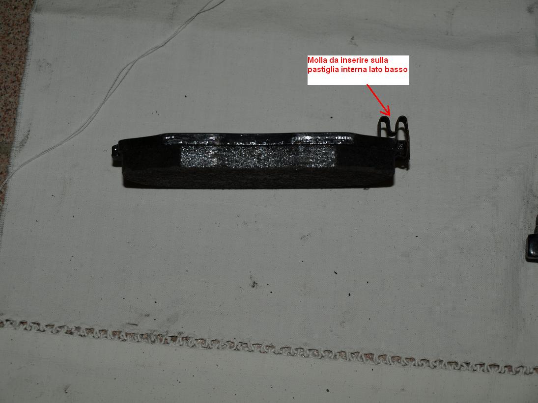 Sulle pastiglie sono inserite due mollette che si tolgono semplicemente sfilandole, magari aiuttandosi con il cacciavite. Notate inoltre che sulla pinza sono inserite delle mollette ad “U” antivibrazioni.